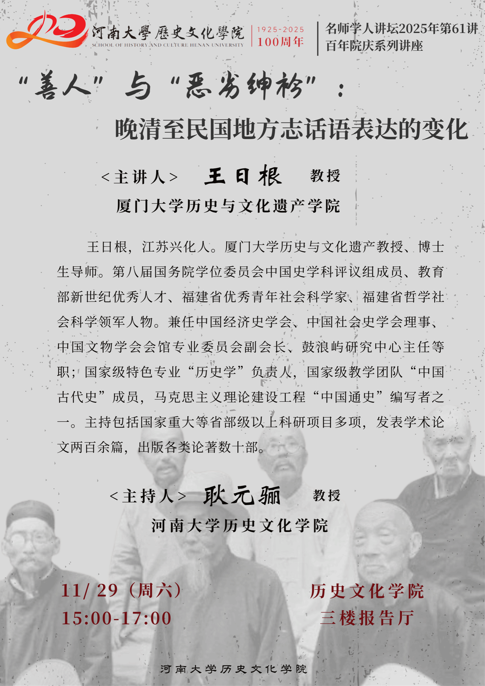 【讲座预告】王日根:“善人”与“恶劣绅衿”:晚清至民国地方志话语表达的变化