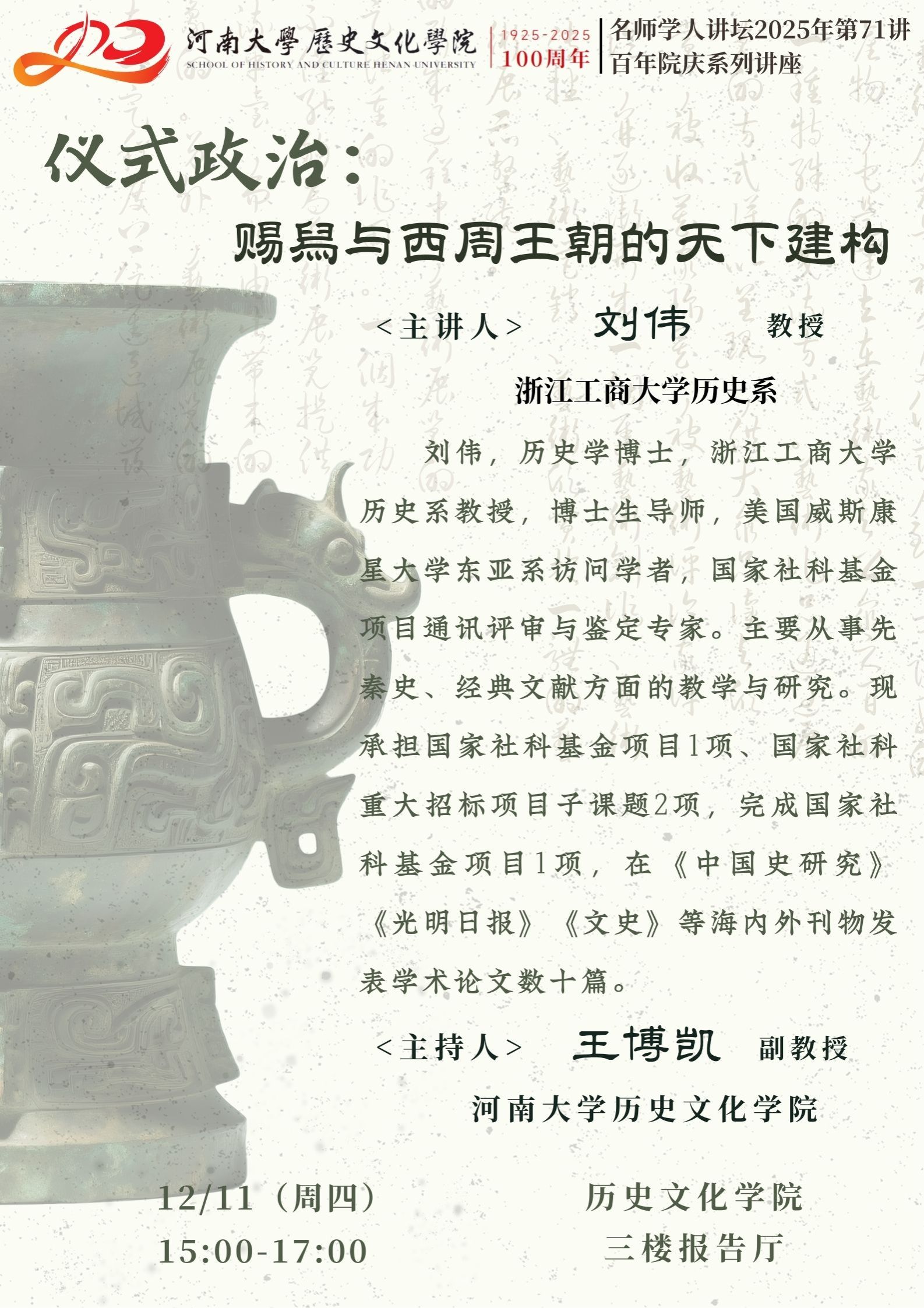 【讲座预告】刘伟:仪式政治 ——赐舄与西周王朝的天下建构