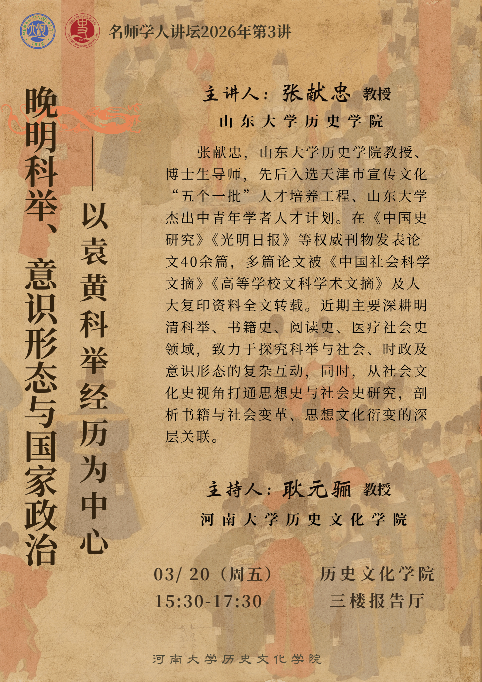 【讲座预告】张献忠:晚明科举、意识形态与国家政治——以袁黄科举经历为中心