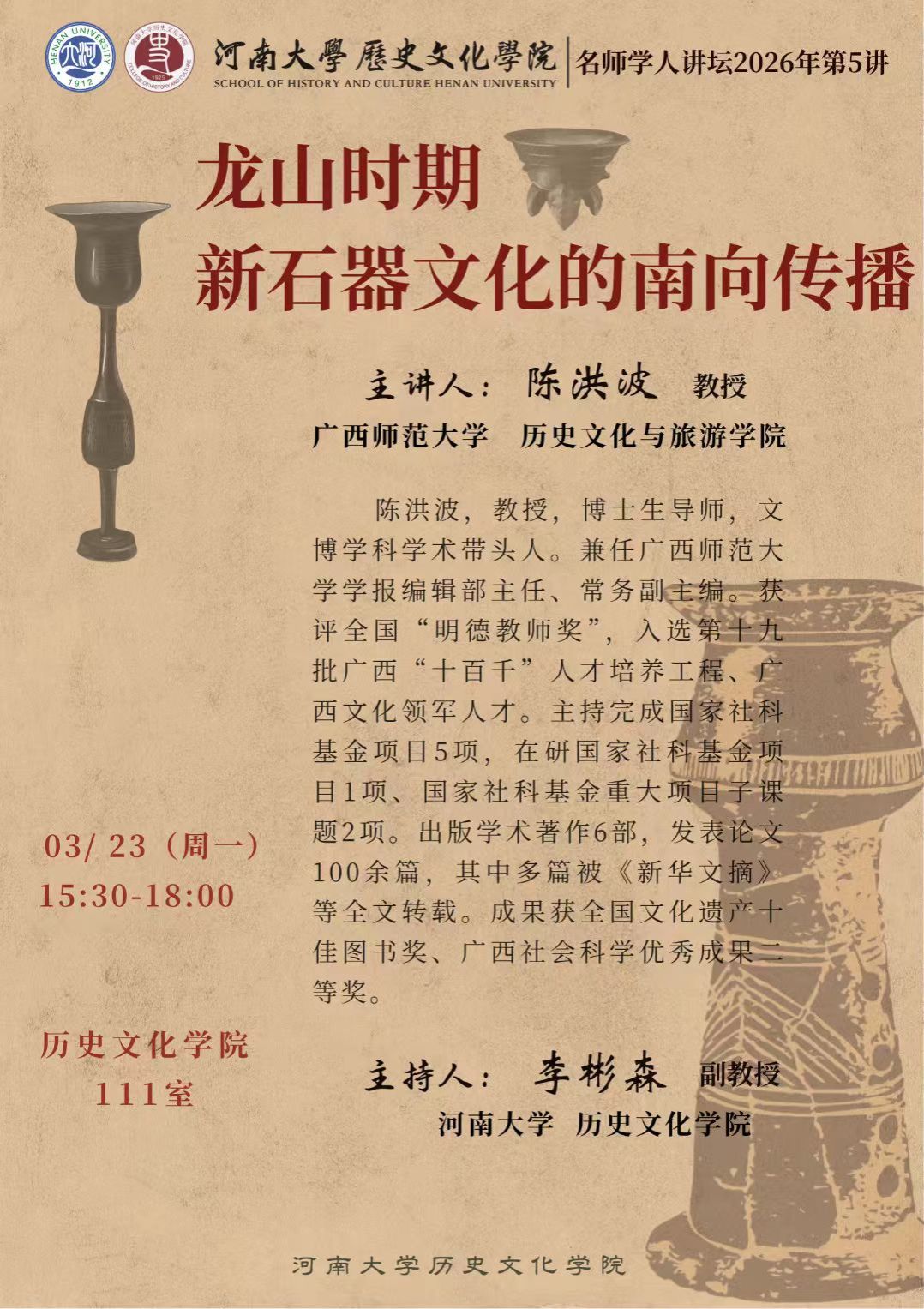 【讲座预告】陈洪波:龙山时期新石器文化的南向传播