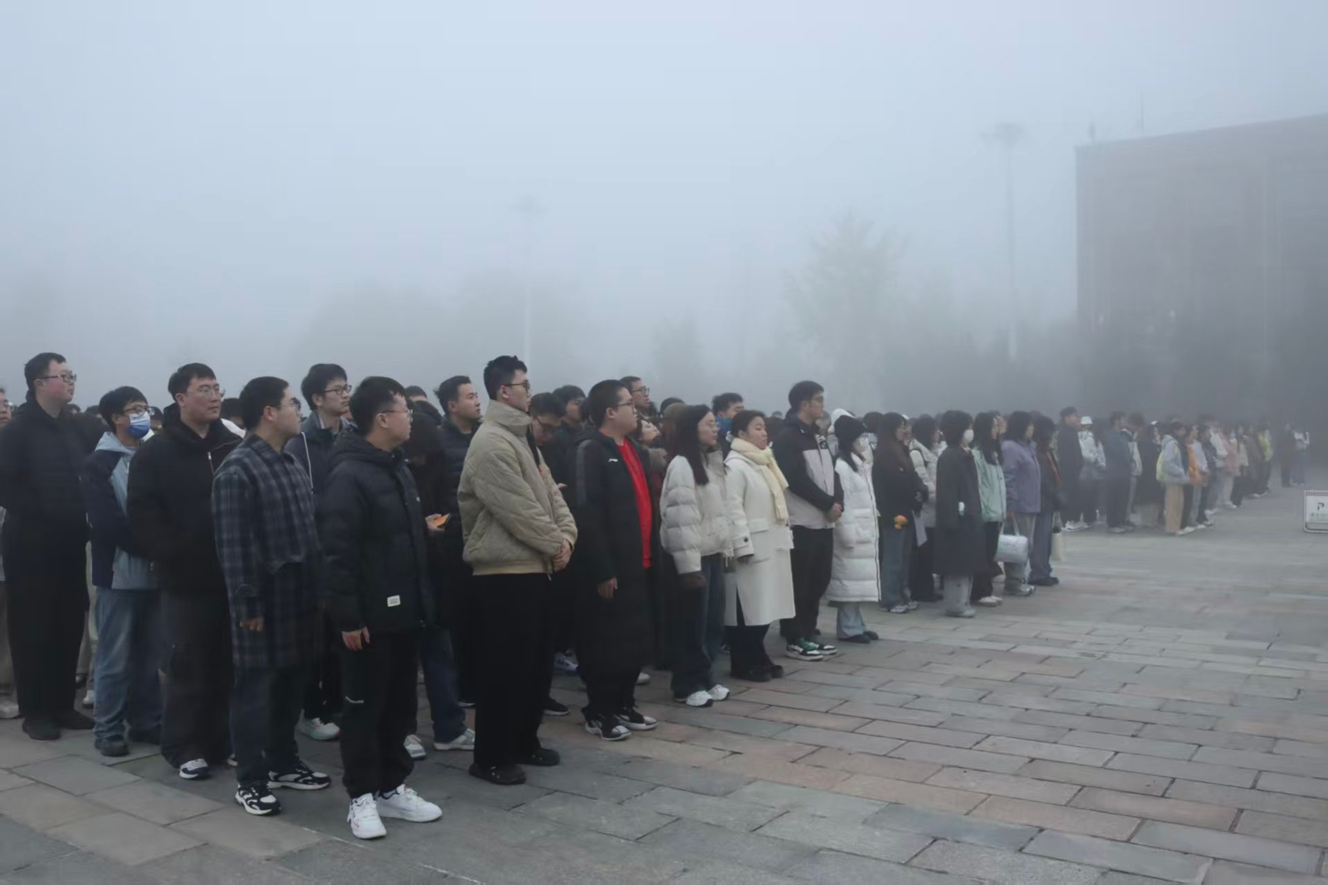 晨曦微露,薄雾轻笼。全体师生在大礼堂广场整齐列队,怀着崇敬之情静待国旗入场。英姿飒爽的国旗护卫队迈着铿锵有力的步伐,精神抖擞地从队列后方正步前行至升旗台前。在雄壮的国歌声中,鲜艳的五星红旗冉冉升起,全体师生肃立行注目礼,现场气氛庄严肃穆。