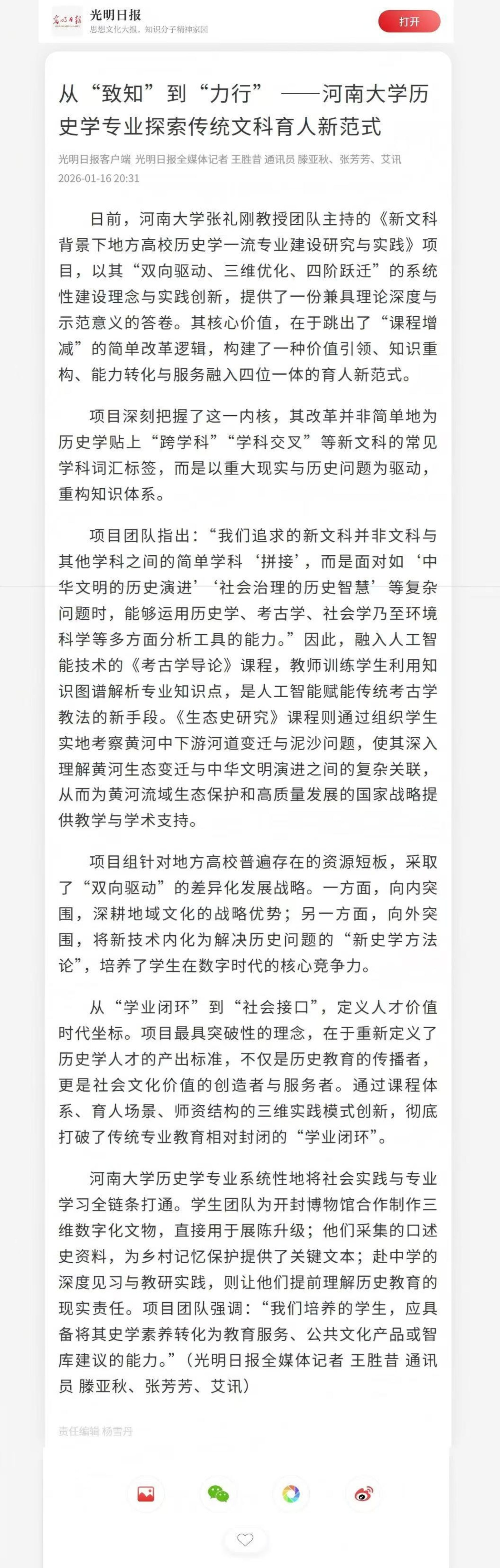 历史学专业探索传统文科育人新范式》为题的文章,报道黑料网