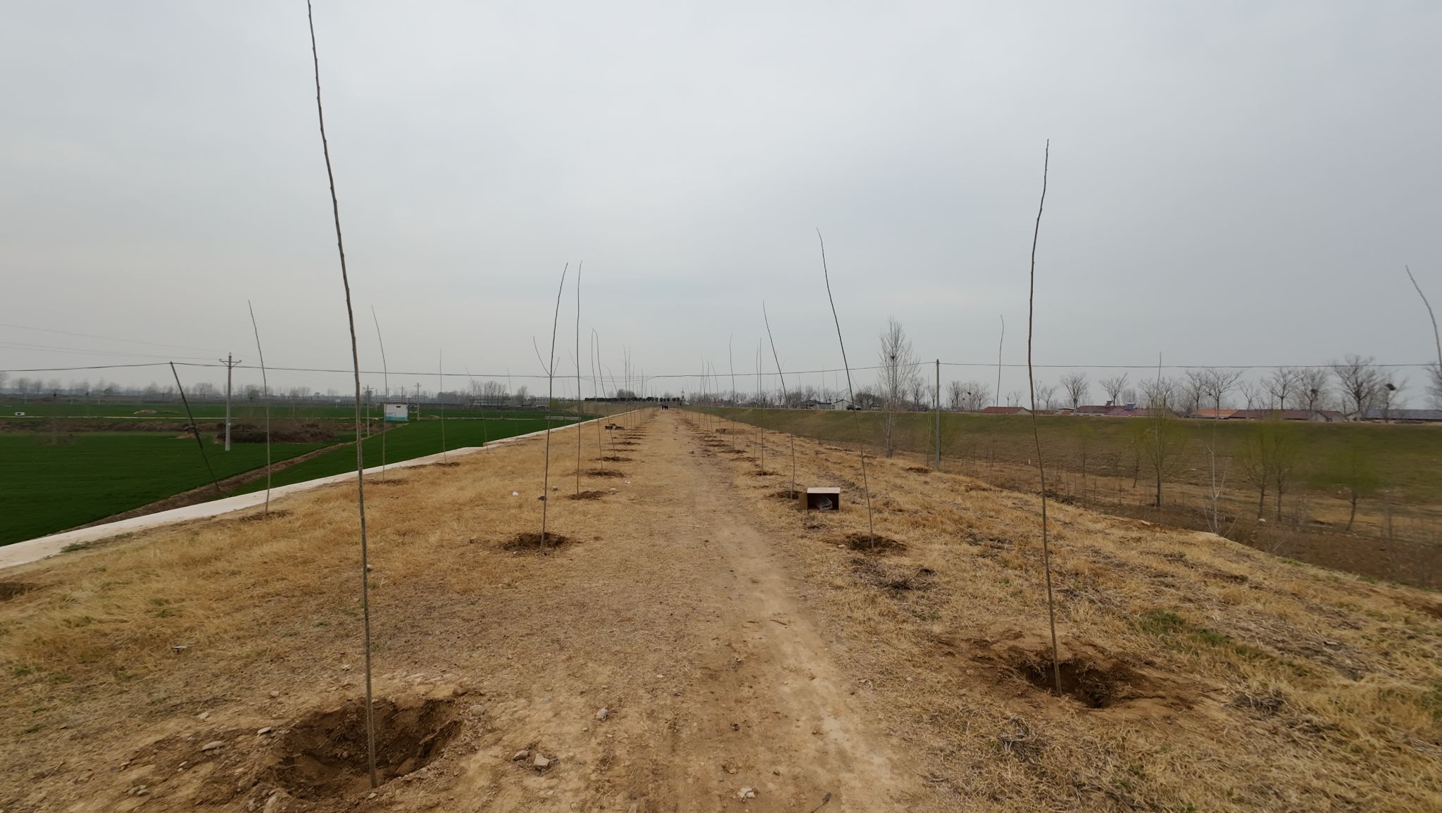 经过众人共同努力,1000棵树苗整齐地扎根于黄河岸边。这些树苗不仅为春日的黄河大堤增添了片片新绿,也为筑牢黄河流域生态安全屏障种下了青春的希望。