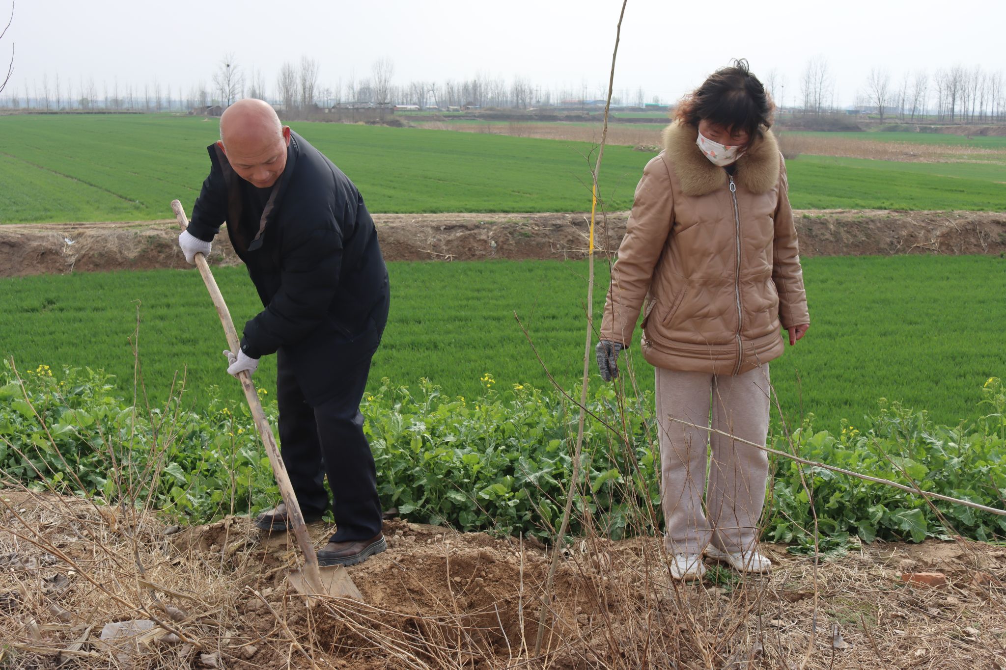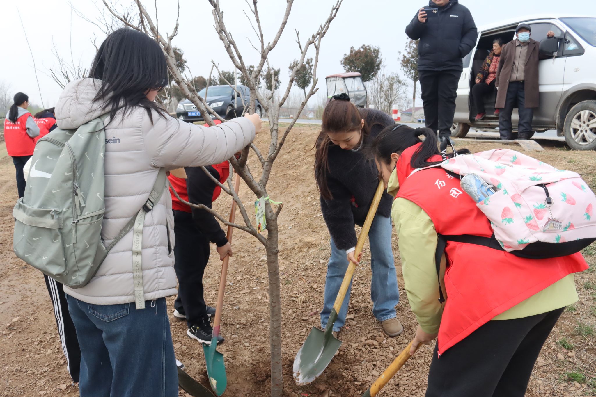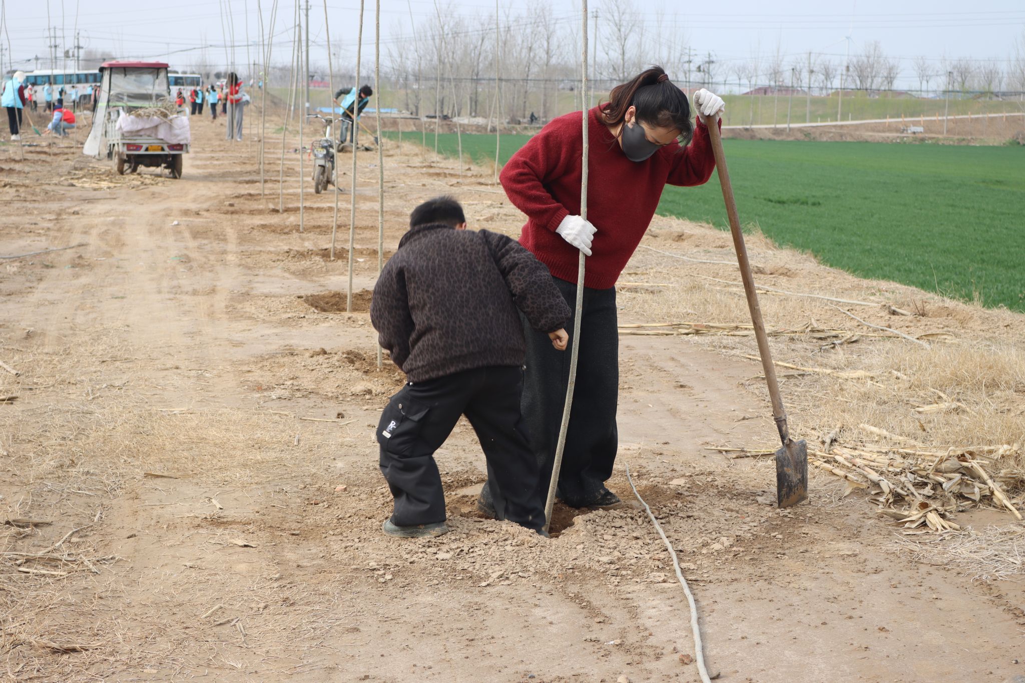 植树过程中,附近的村民也纷纷加入进来,村民们带着热情和丰富的种植经验,迅速融入植树队伍中,现场气氛热烈,干劲十足,每个人都在用自己的行动为改善黄河生态环境贡献力量。