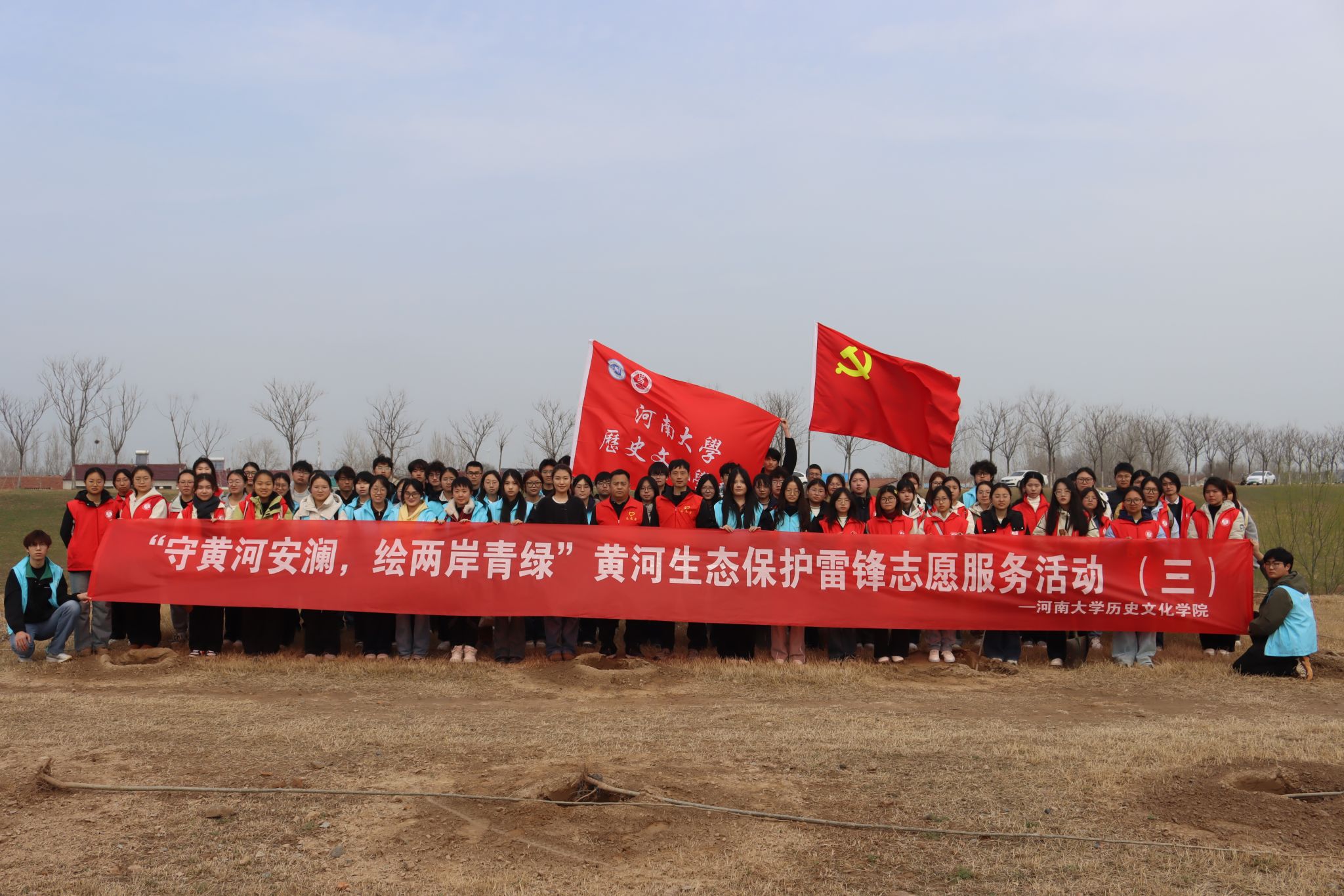 组织70余名师生赴黄河封丘段,开展“守黄河安澜,绘两岸青绿”黄河生态保护雷锋志愿服务活动。