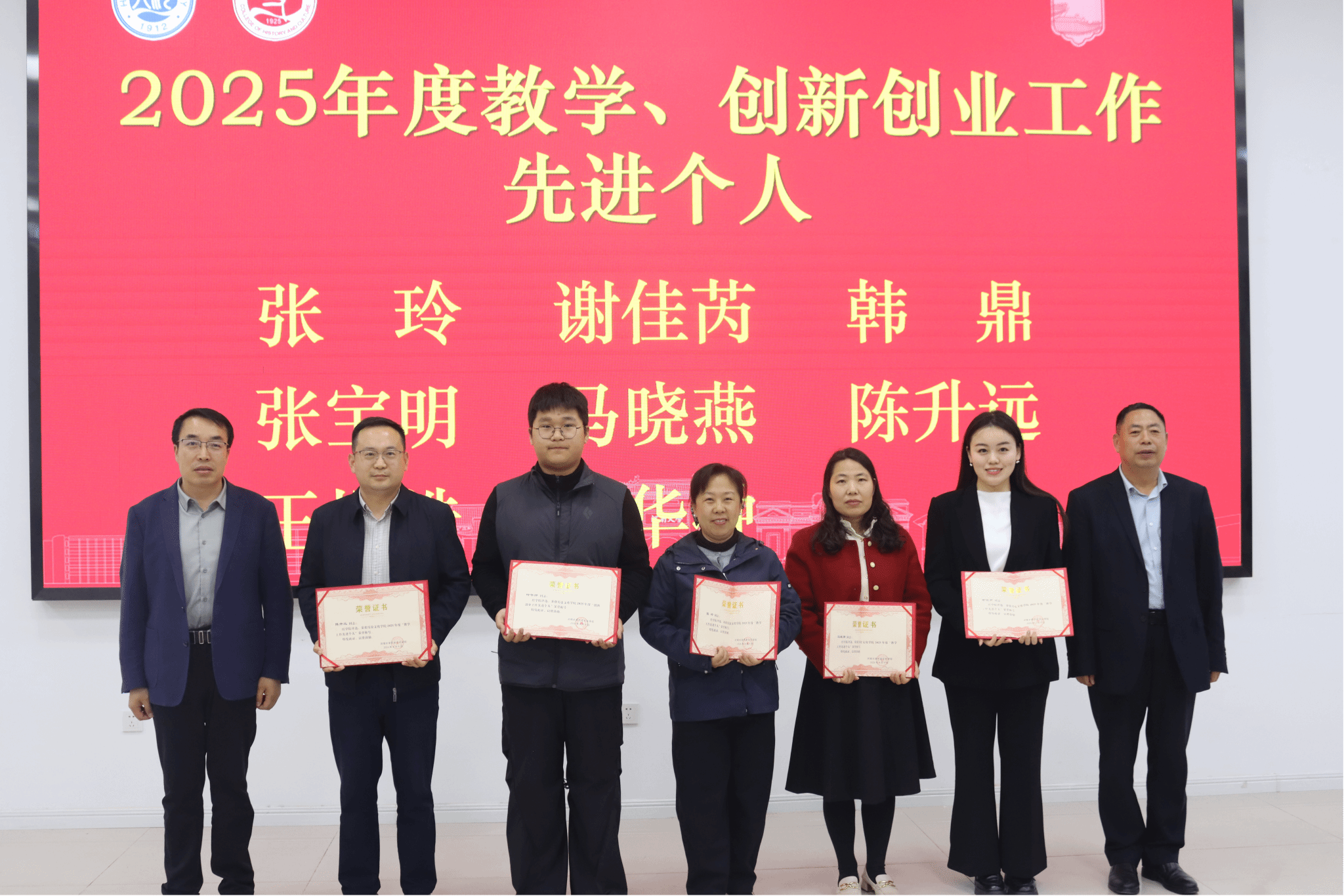 党委书记张占党、院长祁琛云为获奖人员颁奖并合影留念。